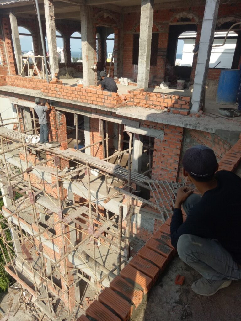 - Xây toàn bộ tường bao, tường ngăn chia các phòng và vệ sinh toàn bộ công trình.